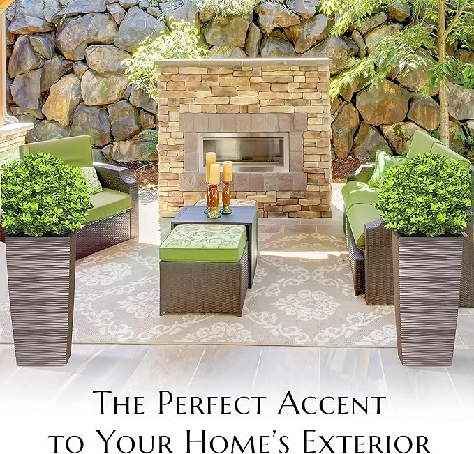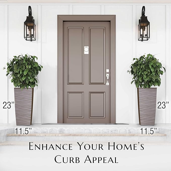 Mueller M-Resin Heavy Duty Tall Planter, Indoor/Outdoor Grande Plant, Tree, Flower Pot, 2-Piece Set, 24”, Modern Design, Built-in Drainage, Mocha