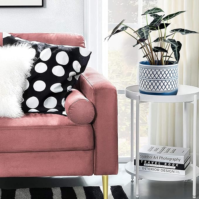 - Well Designed Flower Plant Pots Indoor - Baked in high temperatures make planters is sturdy & durable. The matte white finish with concave blue stripes makes this plant pot a minimalist chic.