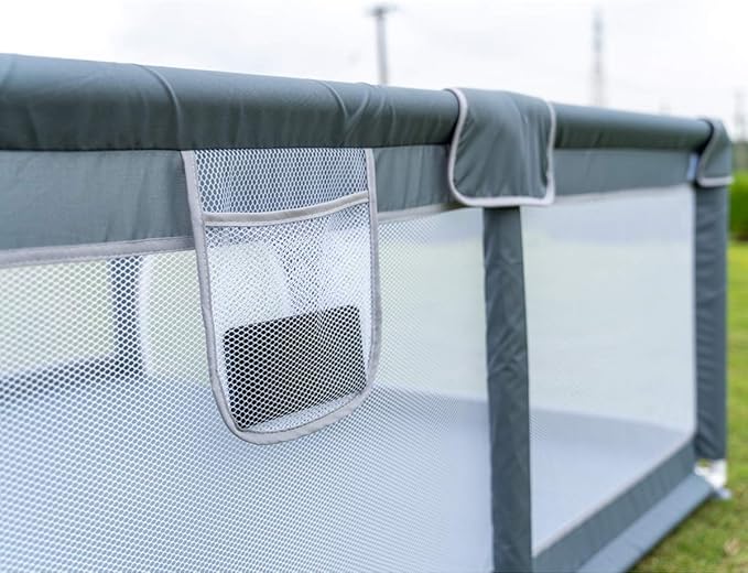 - ❤STABLE AND LARGE SPACE. There are 4 suction cups at the bottom corners of the fence,which can make the fence more stable.There are no stepping points inside the fence, which prevents the baby from climbing out of the fence,they can make your baby safe when playing.Dimensions:L*W*H=62.9*62.9*26.7 inch(160*160*68cm).Enough game space for your baby.