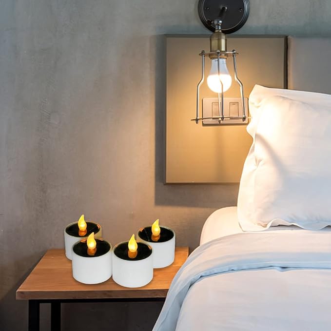 Solar Candle Lights,Flameless Candle Lights,Solar Rechargeable Tea Wax lamp,6 flameless Candle Light, Suitable for Wedding, Valentine's Day, Halloween, Christmas (Small Solar Candle)