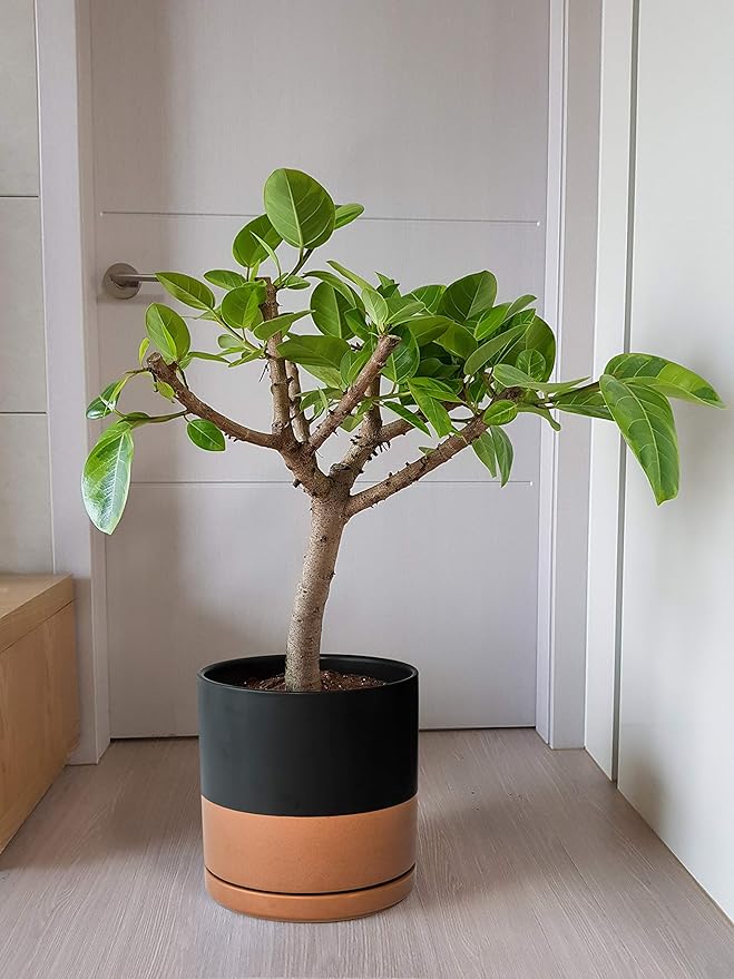 D'vine Dev Set of 2 Plants Pot, 10 Inch Ceramic Planter Pot for Plants with Drainage Hole and Saucer, Black/Speckled Tan, 94-V-E-7
