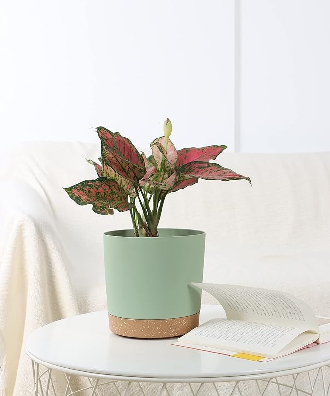 kubvici Indoor Plant Pots Set of 2 Planters 8 inch Plastic Planter with Hole & Saucer Modern Decorative for Outdoor Garden Home (Green, 8 inch)