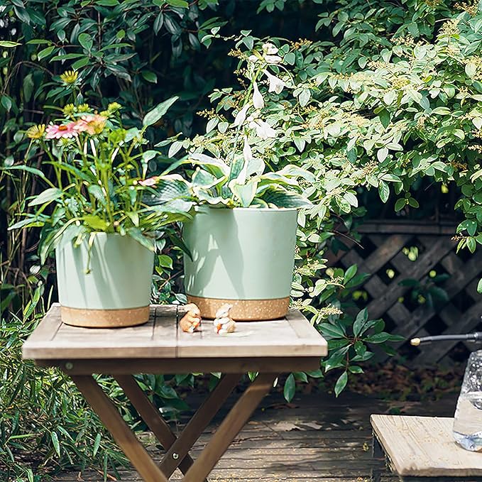 - EASY DRAIN HOLES AND TRAY: Excess Water flows out the dual drainage holes to prevent overwatering and flooding. Plates capture overflow water for easy cleanup. It is recommended to shop a layer of filler in the bottom of the flower pot