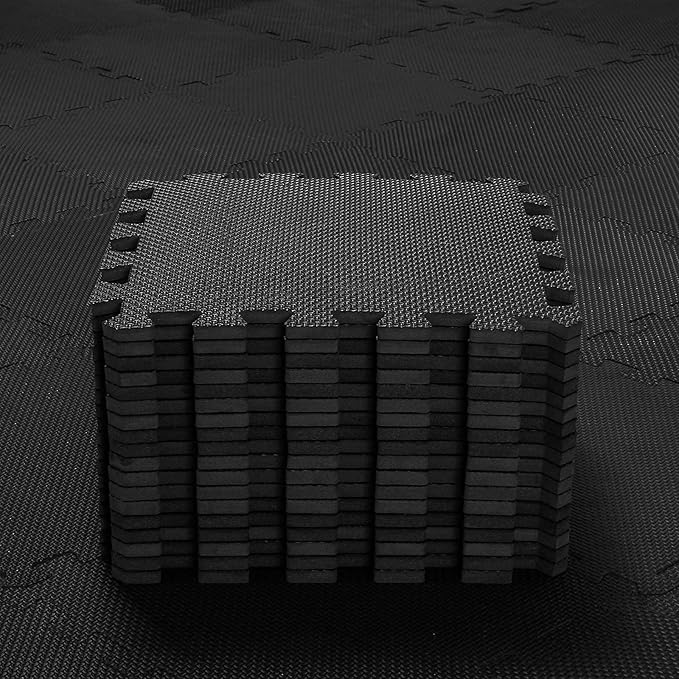 qqpp EVA Rubber 18 Tiles Interlocking Puzzle Foam Floor Mats - Baby Play Mat for Playing | Exercise Mat for Home Workout. Black. QC-Db18N