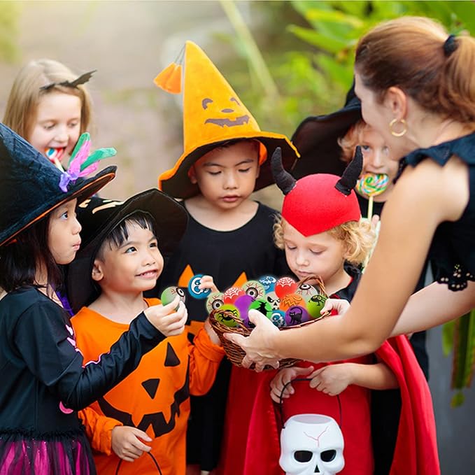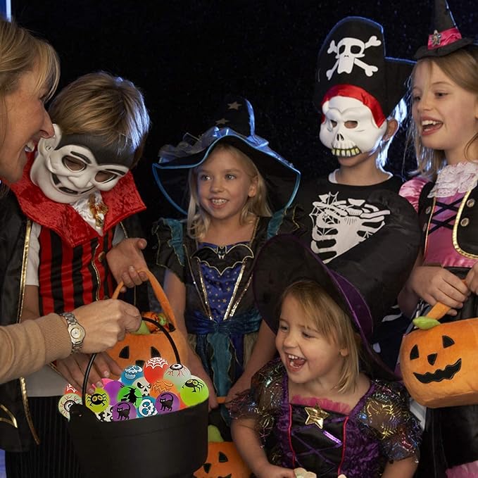 - Ideal Halloween Toys Assortment. Kids love having something to choose from rather than a bowl of candies.The classic Halloween-type designs,which is scary but funny and will glow in the dark, adding kind of spooky atmosphere during night. The kids will definitely love it.All eyes will be on these Glow Bounce Balls!