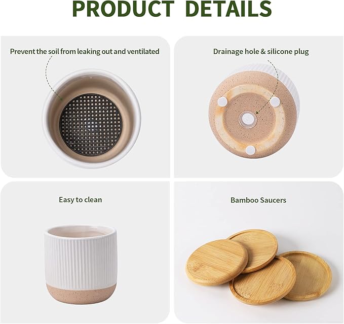 - Ceramic Material: The plant pots are made of high-temperature fired stoneware, which is durable and easy to clean.