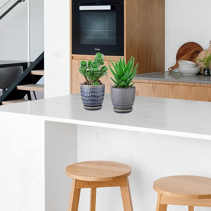 - 【4" Pots with Drainage Holes and Saucers】: Each 4 inches ceramic pots for indoor plants comes with a drainage hole on the bottom, it can drain the stagnant water to avoid the roots of the plant from rot; The attached ceramic saucer can prevent the water run off as much as possible(Plants NOT Included)