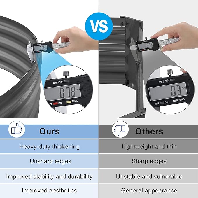 - Double thickness: The average thickness of this galvanized planter galvanized sheet reaches 0.78mm, and the thickest part can reach 1.56mm, which is extremely stable. Compared with the ordinary rectangular elevated garden bed with a thickness of 0.3mm, it will be the right choice for you. buy it! ! !