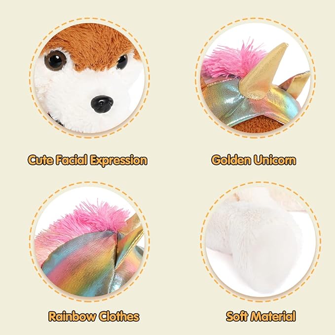 - 【Unicorn Series】Adorably cute one 26 inches long plush mommy unicorn stuffed animal and 4 baby unicorn puppies (pink, purple, blue, silver) with sparkly horns and all the dog unicorns have rainbow manes and tails.
