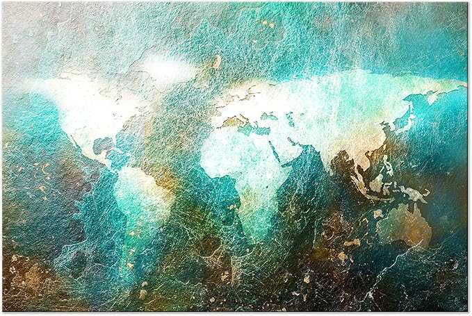 artgeist Textured Canvas Wall Art World Map 24x16 in - 1pcs Painting Canvas Prints Picture Artwork Image Framed Contemporary Modern Photo Wall Home Blue Brown Abstract k-A-0509-b-a