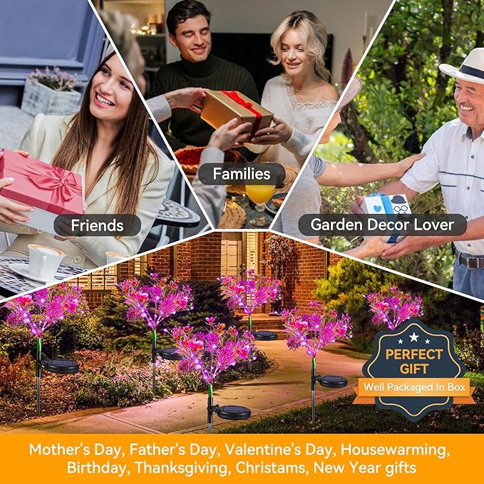 Neporal Garden Solar Lights Outdoor Waterproof IP65, 2PK Phalaenopsis Solar Flowers Solar Garden Lights Waterproof for Patio Decor, Yard Decor,Gardening Gifts for Women