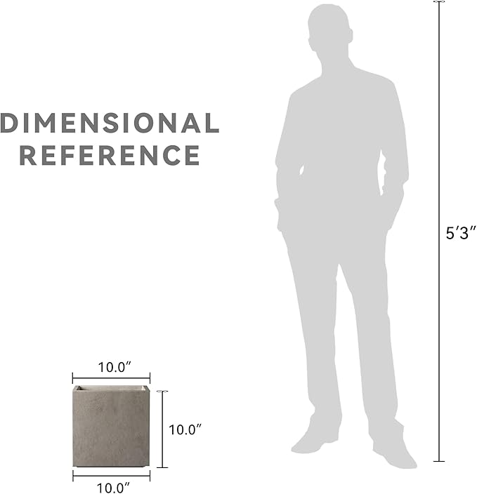 Kante 10 Inch Square Concrete Planter for Outdoor Indoor Home Patio Garden, Large Plant Pot with Drainage Hole and Rubber Plug, Weathered Concrete