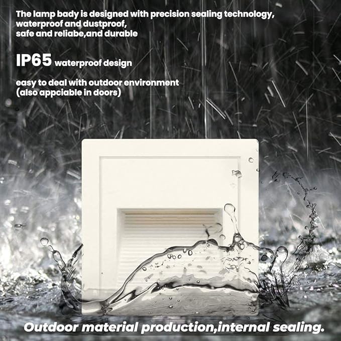 - Good quality: White shell, warm white 3000K, aluminum corner staircase light step light, IP65 waterproof, suitable for indoor and outdoor; (IP65 can prevent the splashing water, but cannot be installed directly under water)