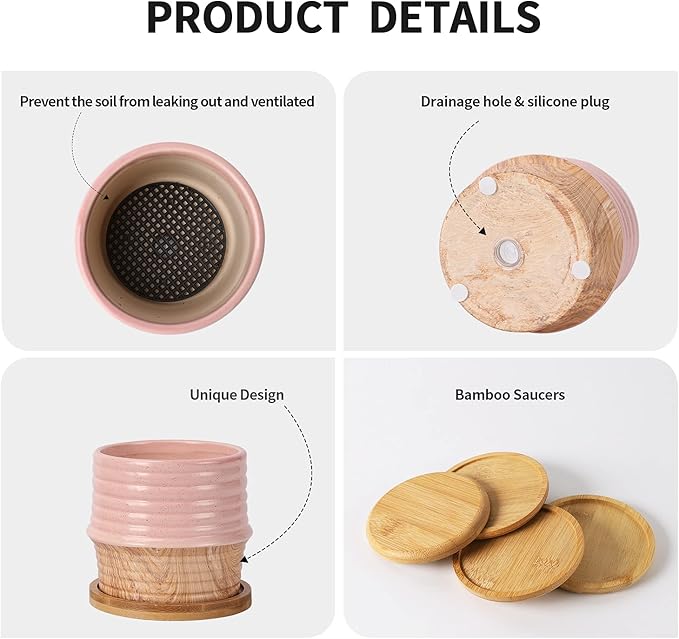 - Drainage Hole and Mesh Pad-Each ceramic pot comes with a drainage hole in the bottom, easily to let exceed water flow out, to help your plants thrive. The mesh pad is enough to cover the drainage hole to prevent the soil come out. Help you create a comfortable and beautiful living space.