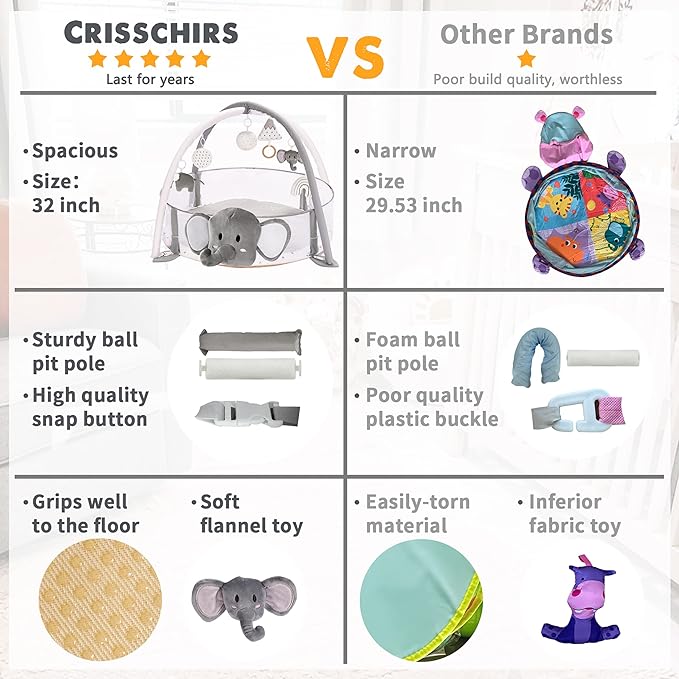 - 5-IN-1 DYNAMIC BABY GYM: Elevate your baby's developmental journey with our versatile baby play gym. It effortlessly transforms into a play mat, tummy time mat, baby gym, protective fence, and ball pit (Balls not included), catering to each developmental stage from 0 to 36 months. Watch your little one explore, learn, and have endless fun.