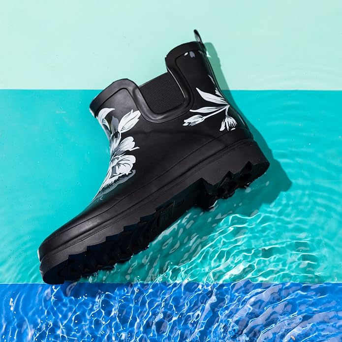 • NATURAL RUBBER CONSTRUCTION: When the wetness tries to sneak in, our cute rain shoes shut it out with a highly water-resistant, built-to-last design. They also have a rugged, chunky, and deep tread to keep you steady in slippery conditions.