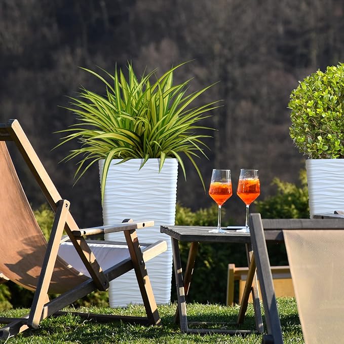 Worth Garden 2-Pack Tall Tapered Planter - Plastic White Square Plant Pots - 22" Tall Large Tree Planter - Modern Matte Wavy Flower Pot for Indoor Outdoor Porch Deck
