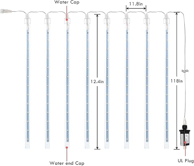 - 2-Pack 16 Tubes 384 LEDs Extendable Plug in Meteor Shower Lights for Christmas Decor: Super Bright with new upgraded LED bulbs, each bulb turn on and off one by one, like a realistic meteor shower. It is time to add a festive looking to your family!