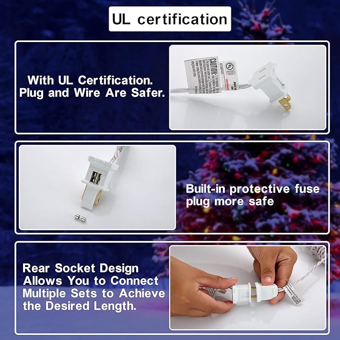 - 🤶【Safe & Durable】Passed UL certification test. IP 44 waterproof feature ensures the Christmas pathway lights can illuminate under a rainy, snowy day. Provide 4 spare fuses and bulbs for replacement in case.