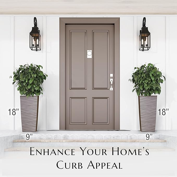 Mueller M-Resin Heavy Duty Tall Planter, Indoor/Outdoor Grande Plant, Tree, Flower Pot, 2-Piece Set, 18”, Modern Design, Built-in Drainage, Mocha