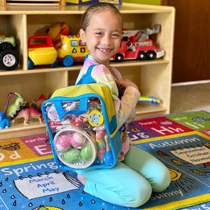 - ๐[Toddler Musical Instruments Set] - 32 Pcs wooden percussion instruments toys including 4* shaker eggs, 3 in 1 xylophone, 3 in 1 wood sounder, 2* rattle drum, 2* handle sleigh bell, 2* maracas, 2* castanet, 2* smile whistle, 2* wrist bell, 1* bird whistle, 1* tambourine, 1* double head maracas, 1* rain column, 1* triangle bell, 1* wooden caterpillar, 1* rainbow bell stick, 1* speaker, 1* face bell, 1* backpack.