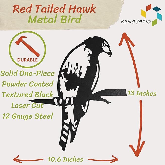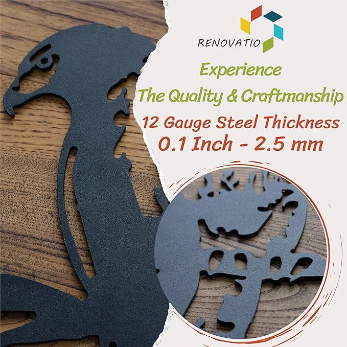 - Life-Like Beauty Meets Remarkable Transformation: Experience the allure of black metal wall decor birds from Renovatio. Including Red Tail Hawk, Owl, Bald Eagle, and more, these metal sculptures are the epitome of outdoor metal yard art. Embrace the essence of gothic outdoor decor as your yard undergoes a remarkable transformation with these exquisite metal birds.