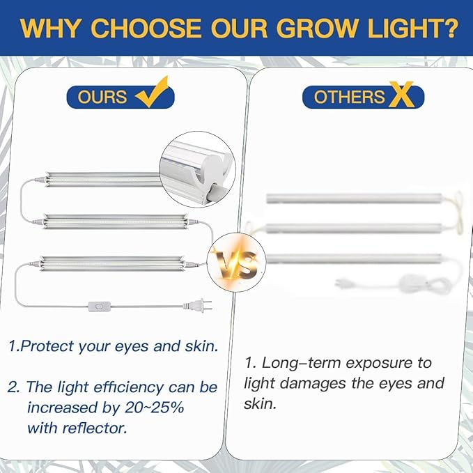 - 🪴V-shaped Reflector Design - Compared with other indoor plant light strips without reflector, GYTF's hanging grow light has better heat dissipation, and the light efficiency can be increased by 20~25%, It is a great option for your cabinet and shelf plants.
