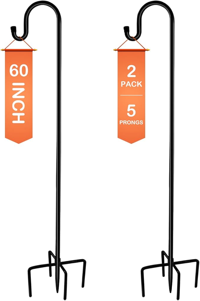 - 【Upgraded in Stability & 5 Base Prongs】Compared to other similar hooks in the market, our heavy duty shepherds hooks have upgraded with 4 extra long and double-forked base prongs to be total 5 prongs which makes it the strongest garden hook in the market and maintain a fixed, upright posture while remaining firmly planted in the ground without easily falling down.