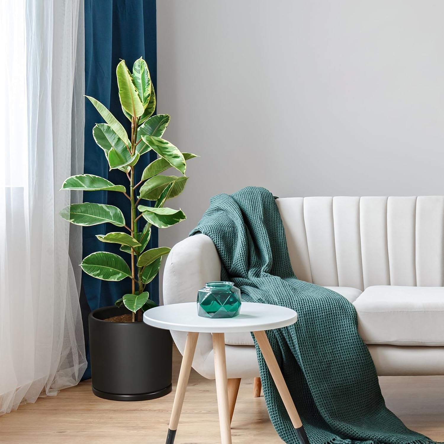 Kazeila 12 Inches Ceramic Planter Pot - Saucer and Drainage Hole - Full Glazed - Matte Black