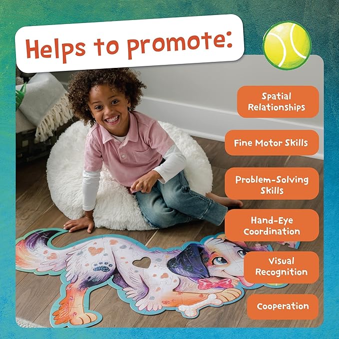 Peaceable Kingdom Shiny Puppy Floor Puzzle – 43-Piece Giant Floor Puzzle for Kids Ages 3 & up – Fun-Shaped Puzzle Pieces – Great for Classrooms