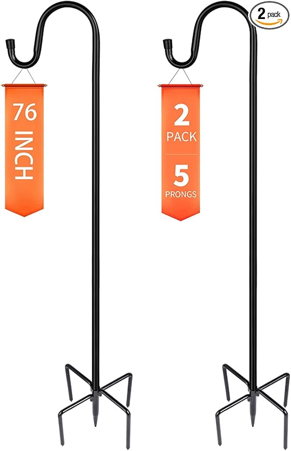 - 【Upgraded in Stability & 5 Base Prongs】Compared to other similar hooks in the market, our heavy-duty shepherds hooks have upgraded with 4 extra long and double-forked base prongs to be total 5 prongs which makes it the strongest garden hook in the market and maintain a fixed, upright posture while remaining firmly planted in the ground without easily falling down.