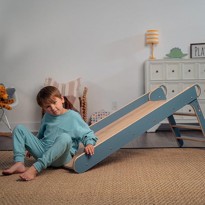 Avenlur Indoor Folding Slip and Slide for Kids - Easy Set Up, Easy to Store Playset, Safe Toy for Toddlers, Foldable Wooden Large First Slide with Extra Long Slipping Slope Ages 1.5-4 Years (Blue)