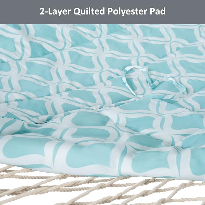 - Hardwood Spreader Bar: 52 inch hardwood spreader bars are more stylish and stable, giving you a comfy nap without the anxiety of falling down. It features countersunk spreader bar holes which reduce the friction between the rope and wood