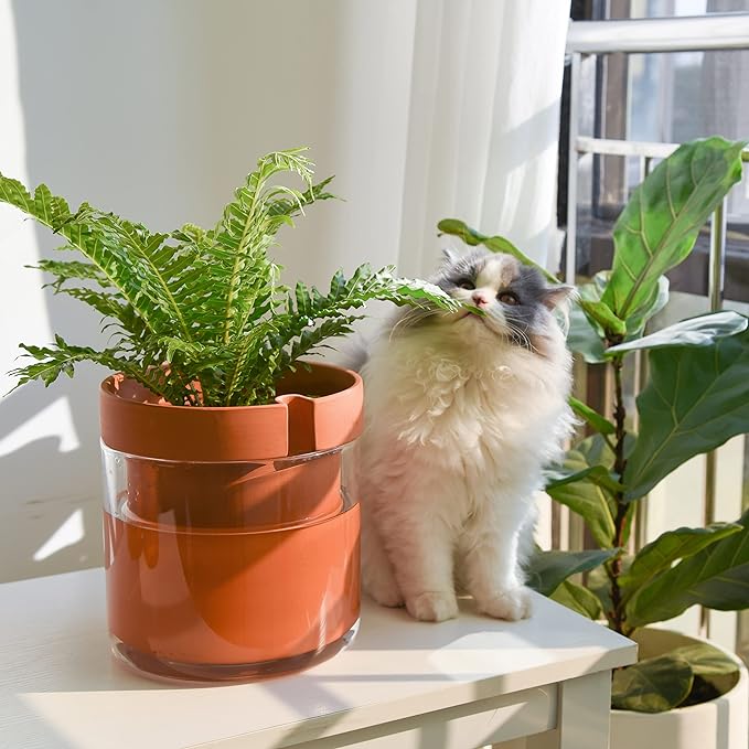 - Self-Watering System: The bottom quarter of the terracotta pot is unglazed, allowing plants to absorb water through the pot walls.