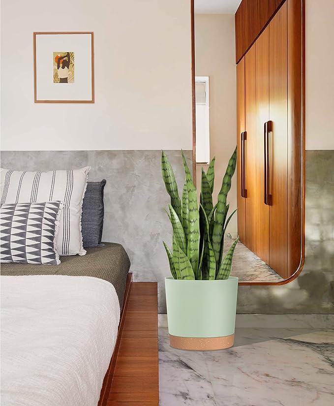 - 【MINIMALIST DESIGN】A simple modern aesthetic and clean matte finish planter pot will match any home or office decor. The light brown rounded trays contrast beautifully with the white or green plant pots for a high-end look