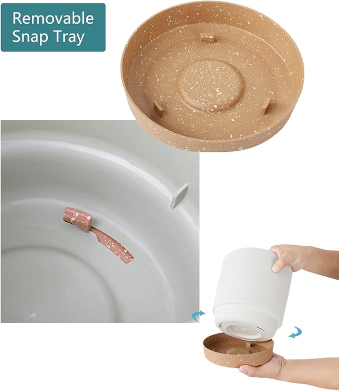 - MINIMALIST DESIGN: A simple modern aesthetic and clean matte finish will match any home or office décor. The light brown rounded trays contrast beautifully with the white or green pots for a high-end look