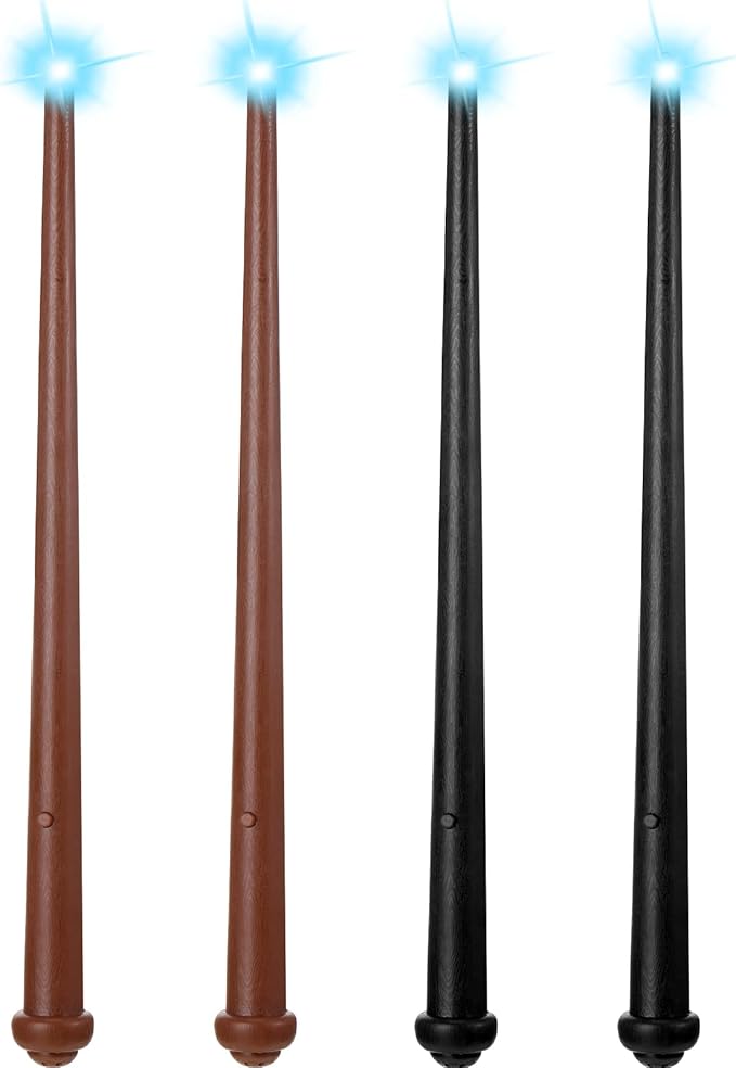 Sumind 4 Pieces Light up Wand Magic Light and Sound Wizard Wands, Illuminating Witch Wand, Costume Accessory for Halloween Cosplay Birthday Party Favors(Black, Dark Brown)