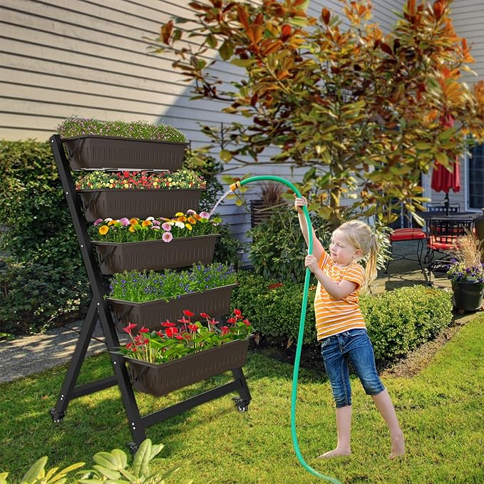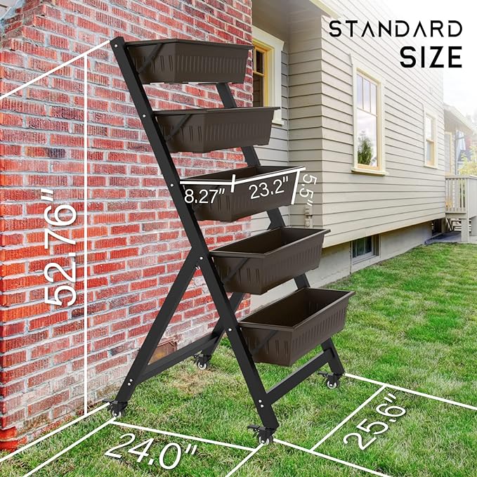 - 【Basic Structure】 The 5 tiers vertical garden bed’s each bottom has two drainage holes, which can prevent plants from rot or over-drying. 4 lockable wheels can help you move it indoor or outdoor as you want