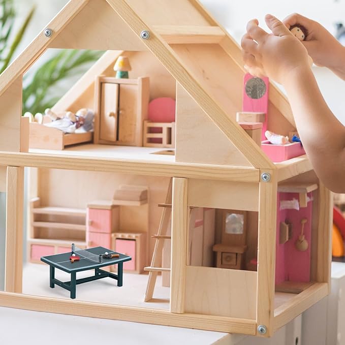 NUOBESTY Miniature Pong Table Tennis Paddle Set Doll Mini Sports Dollhouse Furniture Decoration Accessories