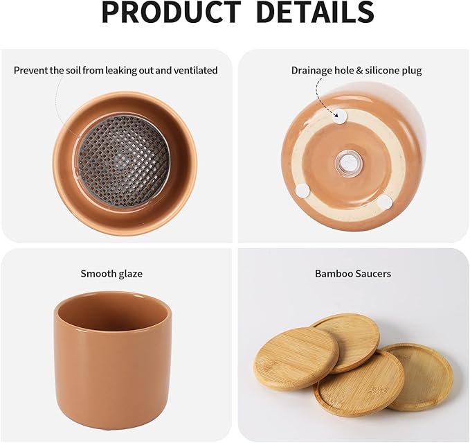 - Versatile Usage: The 4 inch round ceramic plant pot is suitable for growing small potted plants indoor and outdoor for home decor.