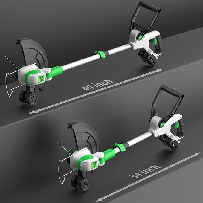 - 【2-IN-1 Weed Wacker】This weed wacker cordless is not only a trimmer, but also a wheeled edger, easily converting in seconds without tools, leaving no corners untouched also protects your plants and landscape, electric weed wacker making your lawn straighter and more beautiful !