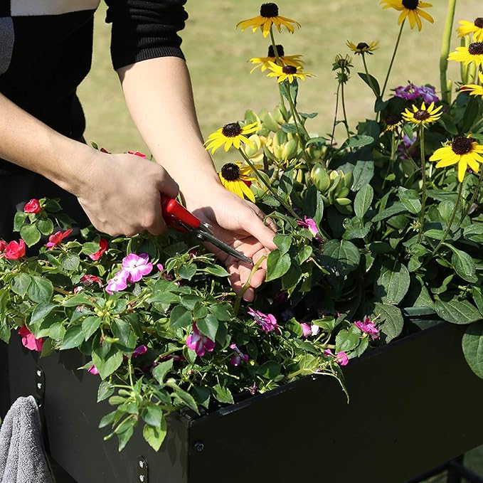 - Raised Garden Bed: Sturdy metal construction with square iron table legs for sufficient support and durability.