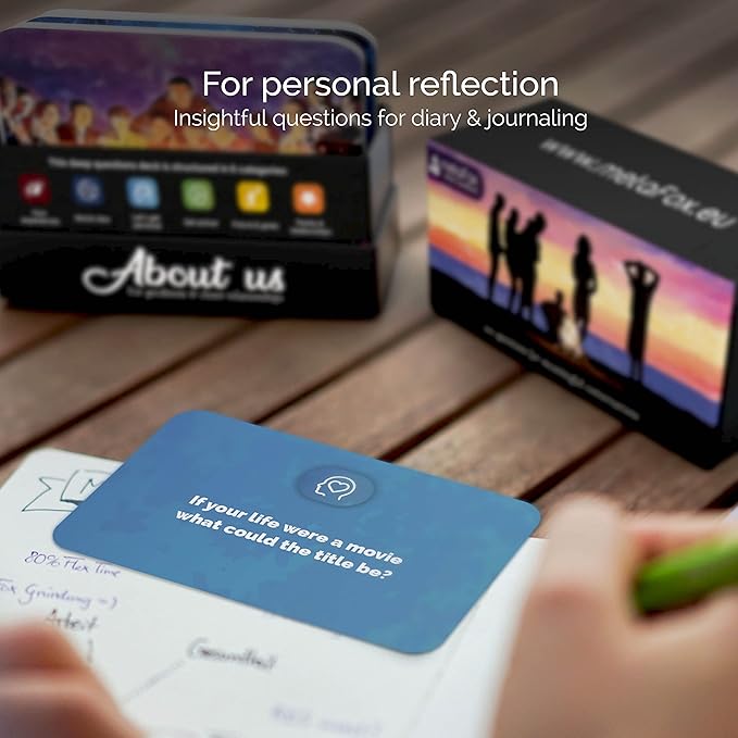 - β¨ A CONVERSATION GAME BORN FROM REAL-LIFE EXPERIENCE. About Us was created to keep in touch with friends in a fun and fresh way. In countless sessions it worked very well! We offer you this conversation starter set hoping it will bring laughter, joy and connection with people you care about.