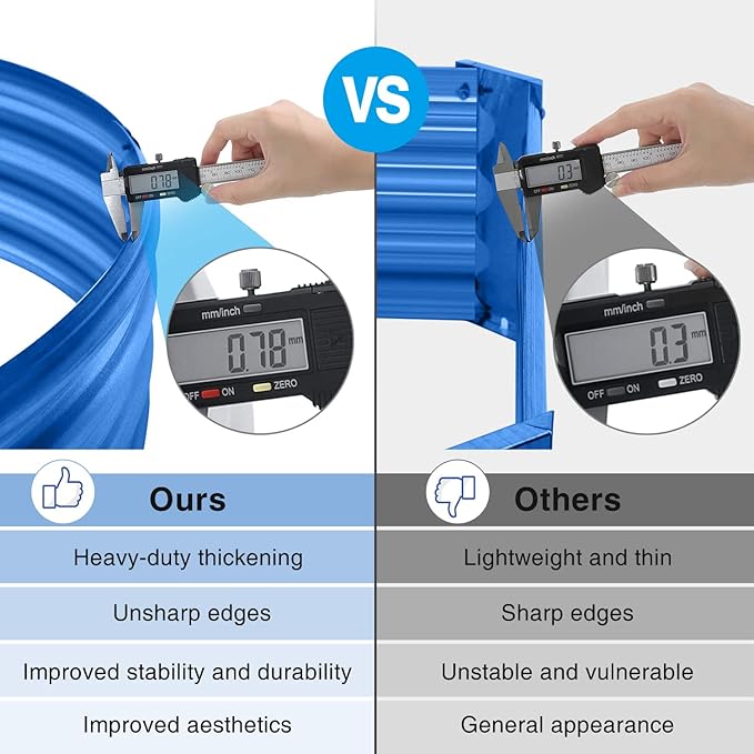 - Double thickness: The average thickness of this galvanized planter galvanized sheet reaches 0.78mm, and the thickest part can reach 1.56mm, which is extremely stable. Compared with the ordinary rectangular elevated garden bed with a thickness of 0.3mm, it will be the right choice for you. buy it! ! !
