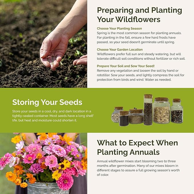 - Perfect for Zones 3-10 - This bulk outdoor mix is all annual and suitable for all USDA hardiness zones, 3-10. These animal resistant, low-maintenance varieties prefer full sun and will produce mixed color blooms all spring through fall.
