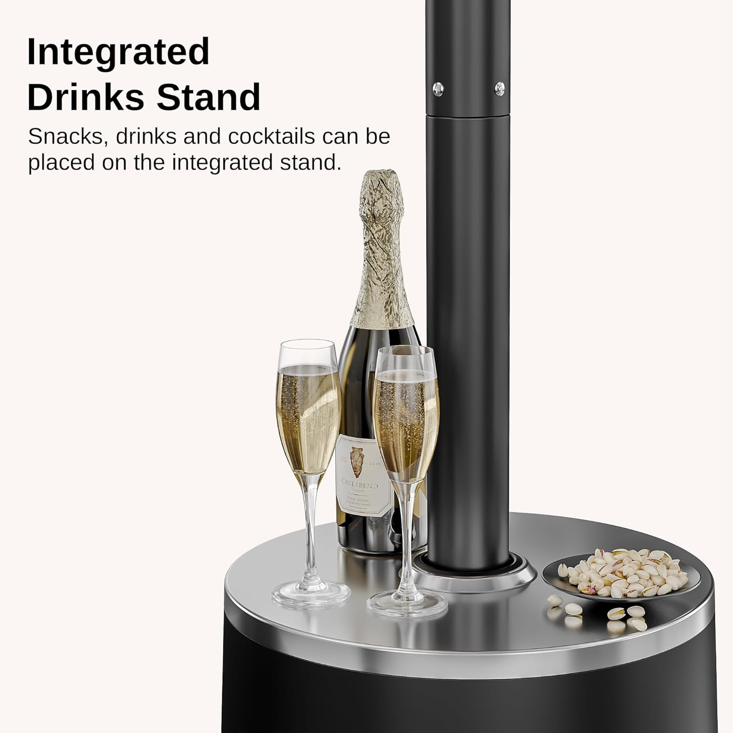 - 𝗥𝗼𝘂𝗻𝗱 𝗧𝗮𝗯𝗹𝗲 𝗣𝗮𝘁𝗲𝗻𝘁 𝗗𝗲𝘀𝗶𝗴𝗻: Designed with a round table propane tank lid made of stainless steel material, the outdoor heater for patio is convenient for you to place snacks, drinks, phones or other small things.