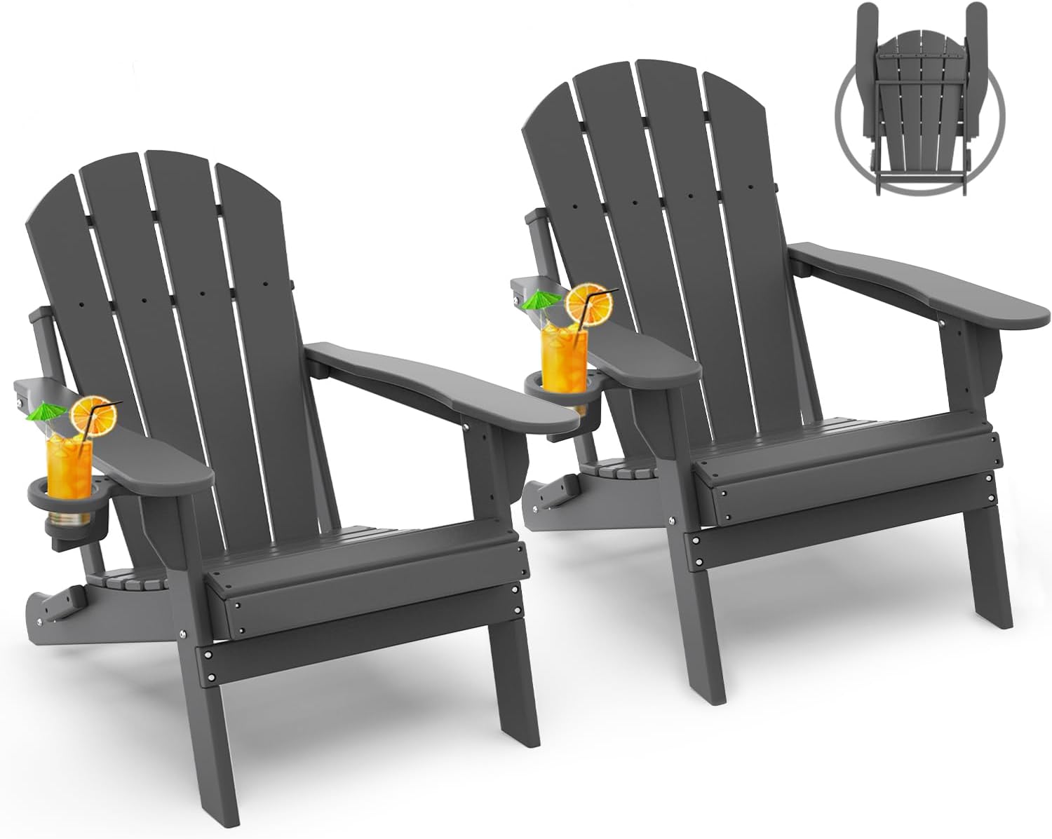 - 【Ergonomic & Foldable】 GreenVines Folding Adirondack chair features a hidden cup holder in the right arm, offering ample space for drinks or media devices. The reclined legs are designed for stability without the need for pins or chains. Easily foldable, this chair is perfect for storage at home or for taking on road trips. The slatted seating ensures quick drying after rain, while trimmed edges enhance safety for you and your family