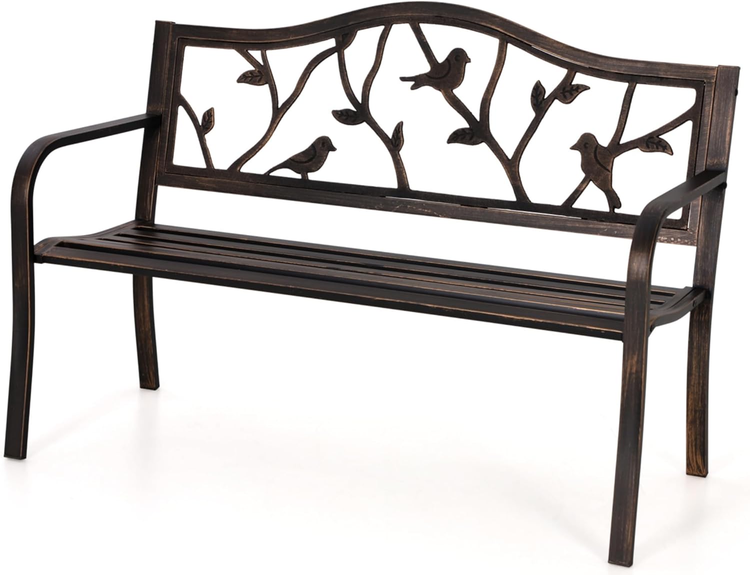 MFSTUDIO 50" Outdoor Garden Bench, Patio Metal Frame Park Bench with Bird Pattern Backrest for Porch, Lawn, Deck(Bronze)