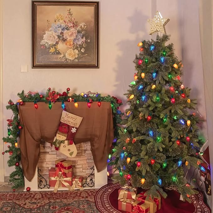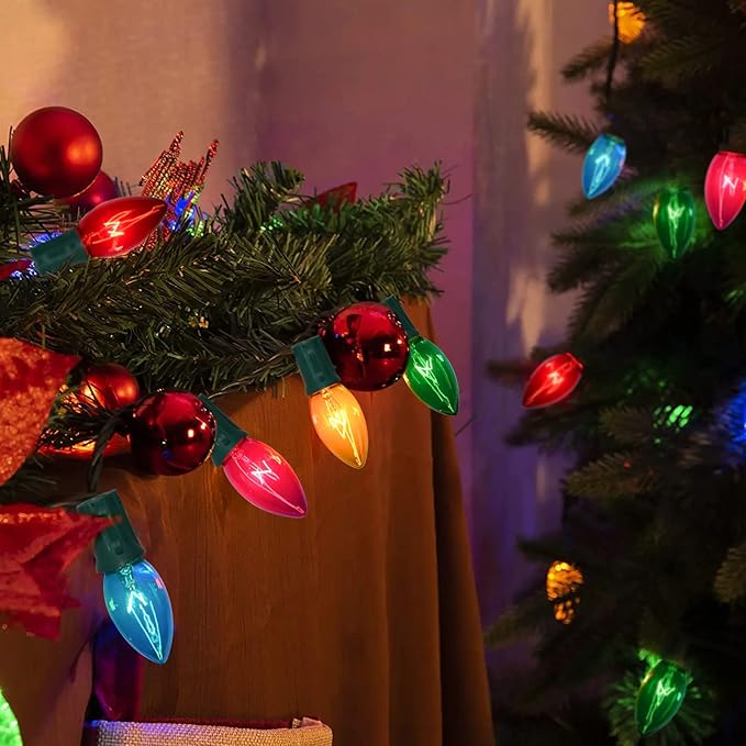 - C9 Multicolor Christmas Lights Outdoor: C9 christmas lights come with a vibrant assortment of red, green, pink, blue, and yellow bulbs, instantly transforming your space into a festive wonderland. The vivid colors emit a warm, inviting glow, creating an enchanting atmosphere for your holiday festivities.
