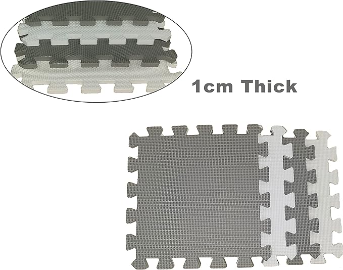 18 Pieces Foam Play Mat, Interlocking Playmat Tiles, Foam Floor Mat Tiles for Kids, Puzzle Play Mats, Exercise Gym Mats – Color of Gray & White with Border